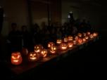 und farblich individuell gestaltet sowie passend zu Halloween gruselige Kürbisse geschnitzt.